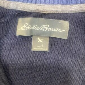 Eddie Bauer Sweater Mens L Navy Blue 1/4 Zip Pullover 100% Cotton