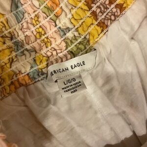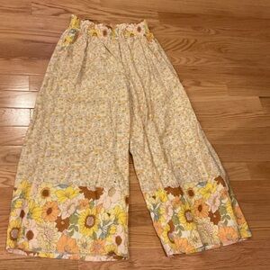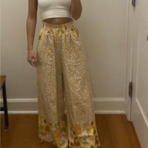 American Eagle High-Waist Wide Leg Floral Pants - Yellow cotton linen large