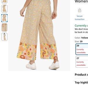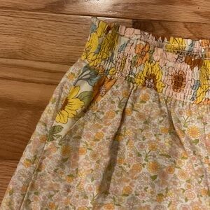 Lightweight wide leg pants with a high smocked waistband. Soft yellow floral print offers a breezy, feminine look. Designed for comfort and easy styling with camis and tops. Yellow floral color brightens outfits for warm-weather wear.