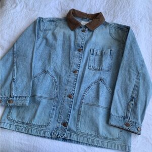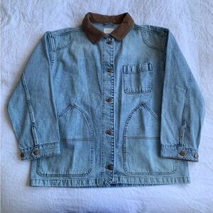NWT Doen Pascual Cotton Denim Jean Corduroy Collar Barn Jacket Deveraux Wash