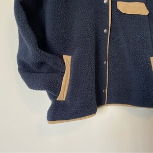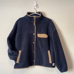 THE NORTH FACE Cragmont Sherpa Fleece Jacket XL Blue Tan Trim Snap Teddy Coat