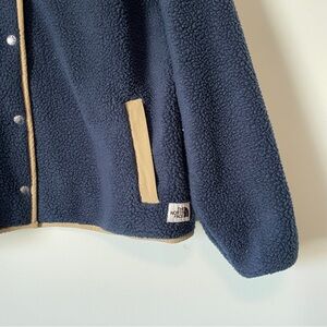 THE NORTH FACE Cragmont Sherpa Fleece Teddy Bear Jacket Women’s XL Blue Tan Trim Snap Coat