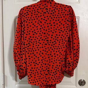 Hunter Bell Vibrant Orange Blouse with Black Spots XS