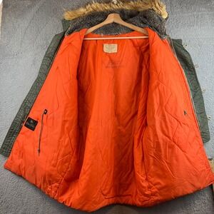 Vintage N3-B Army Green Hooded Fur Trim Hooded Puffer Jacket Coat Mens Sz 44
