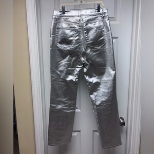 Trendy metallic silver jeans by LOFT that make a bold statement. These straight-leg pants feature a classic 5-pocket design, zip fly with button closure, and a sleek high-shine finish perfect for nights out, holidays, concerts, or statement street style looks.