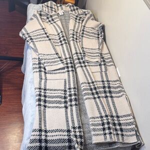 Sincerely Jules Black & Tan Plaid Long Collared Coatigan - NWOT