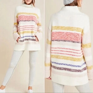 Anthropologie Elana tunic pullover funnel neck sweater striped relaxed Sz Small