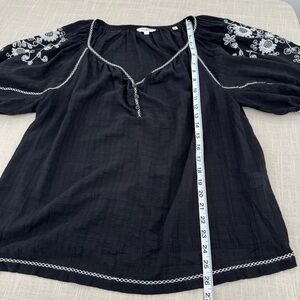 Max Studio Bubble Sleeve Embroidered Blouse Black Top Size Large