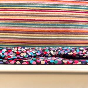 Get inspired. This bright nylon wristlet, decorated with a vibrant, festive "dance party dot" confetti print and finished with a matching bow, was handcrafted on purpose by the artisans of masoro: 150 talented rwandan women reshaping the lives of 20,000 people in their community.