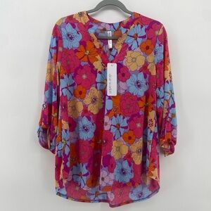 Dear Scarlet | NWT Women’s Vibrant Bright Neon Floral V-Neck 3/4 Sleeve Blouse