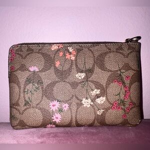 Coach signature print zip pouch with floral embroidery. ITS MISSING THE STRAP but very clean, no scuffs or marks.