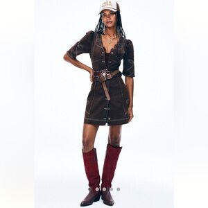 Anthropologie NWT Love The Label Ines Denim Mini Dress size L. PTP - 19”, stretched to 20”. Waist - 16,5”, stretched to 17,5”. Hips - 22”, stretched to 24”. ✨ LAST ONE • RARE FIND ✨ This Anthropologie – Love The Label denim mini dress is the perfect blend of modern structure and vintage-inspired charm.