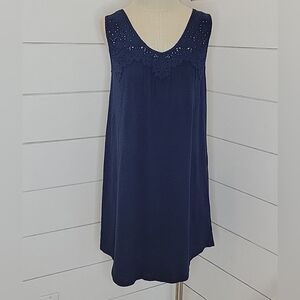 LUCKY BRAND medium navy blue cotton crochet dress