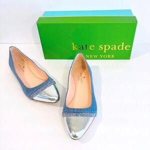 Kate Spade Nelly Denim Ballet Flats Silver Cap Toe Fringe Women size 9.5