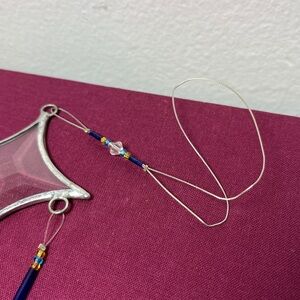 Artisan Made Clear North Star w Blue Glass Panels Beaded Wind Chime Sun Catcher