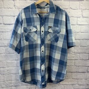 Orvis Mens XL Short Sleeve Button Up Classic Collection Blue Plaid