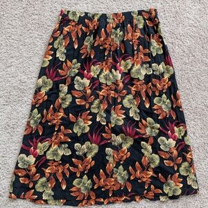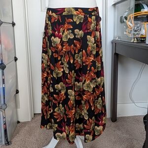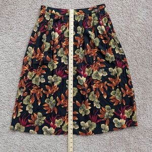 Sag Harbor Petite Vintage Black Green Orange Floral A-Line Midi Skirt Size Large