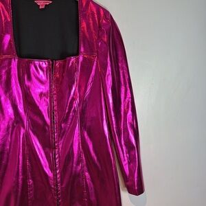 Betsey Johnson Barbie pink dress stacy mini metallic chrome polyurethane