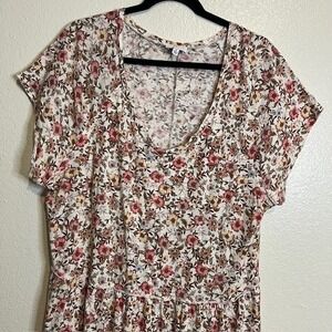 True Craft Plus Size 1X Floral Tiered Babydoll Tunic V Neck Top Cottage Prairie