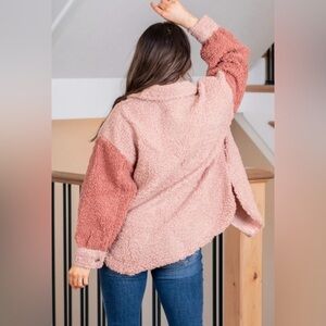 Blu Pepper Color Block Button Front Teddy Sherpa Jacket Size Small