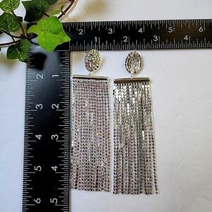 Elegant Iridescent Crystal Full Tassel Earri gs