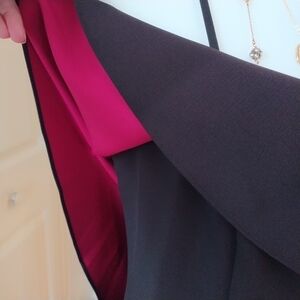 black stretchy cocktail dress with modified ruffles underlined in Red