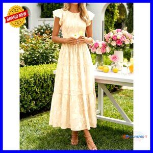 Boho Floral Midi Dress Short Sleeve Smocked A-Line Maxi Beach Vacation