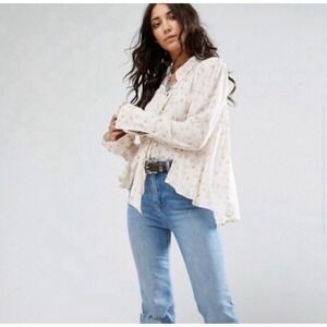 Free People Modern Muse floral tie-neck button-down blouse in cream/yellow XS