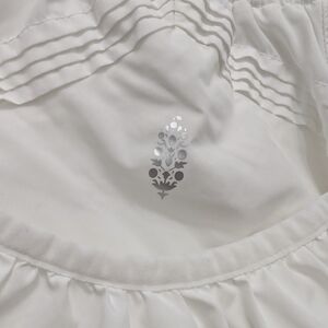 Lightweight white shorts with a flared skort silhouette. Elastic smocked waistband for a comfortable, secure fit. Breathable fabric ideal for casual wear and active days. Stylish white color pairs easily with crop tops and jackets.