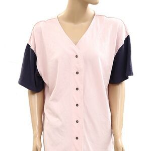 Free People We The Free Homerun Tee Shirt Top Cotton Buttondown Pink XS 284270