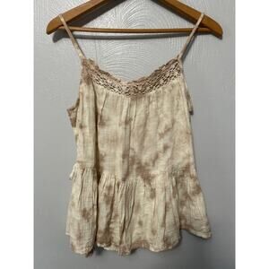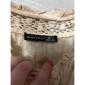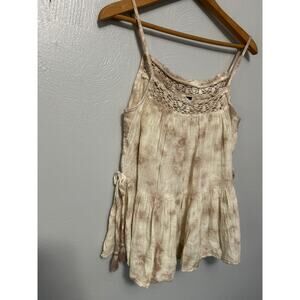 Black Tape Tank Cream Tan Crochet Neck Side Tie Sleeveless Babydoll Top Small