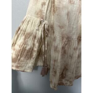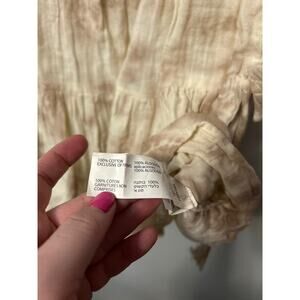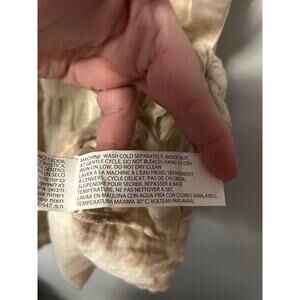 This Black Tape tank top is the perfect addition to your wardrobe! The cream/tan color is versatile and the crochet neck adds a touch of elegance. The side tie detail and sleeveless babydoll style make it flattering and comfortable. It is in great condition and ready for a new home!