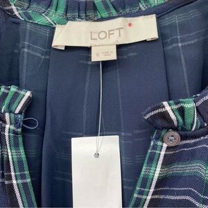 LOFT Green Black Plaid Short cap sleeve dress size 6