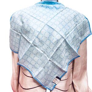# 96 New with sticker on CELINE Paris Mini scarf/ large collective handkerchief cottont 23"x23" features teal blue brand's logo printed all over. Made in Japan,