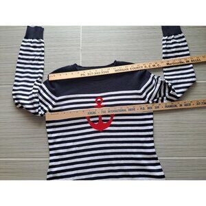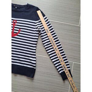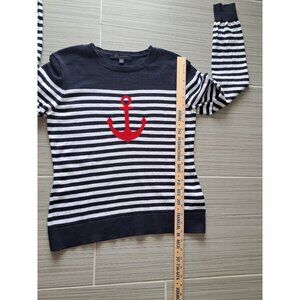 Brooks Brothers Nautical Black & White Striped Sweater Red Anchor Womens Med