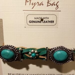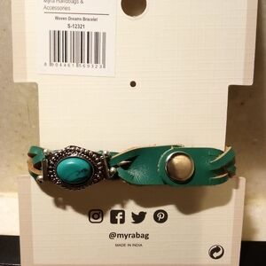 NWT Myra Bag Turquoise and Silver Braided Leather Bracelet