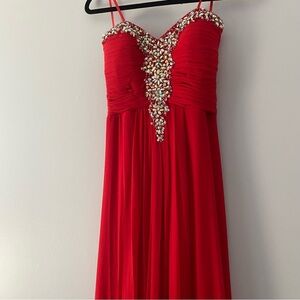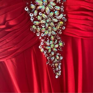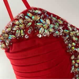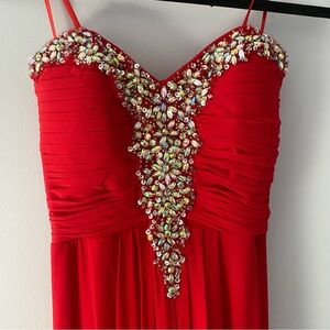 Red, strapless, jeweled prom dress/formal dress