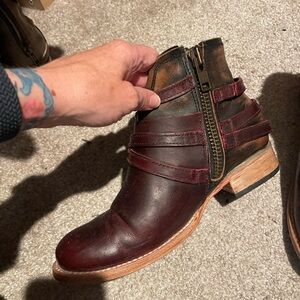 Chic dark burgundy booties with buckle accents. Ideal for versatile styling. Genuine leather, handmade boots as all Freebird shoes are, if you take care of them they will last forever!