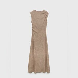 Mango brown midi dress with structured shoulders NWT