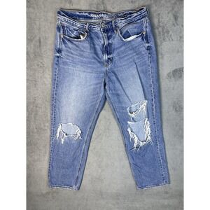 American Eagle Womens Jeans 8 Blue Ripped Denim Highest Rise 90s Boyfriend