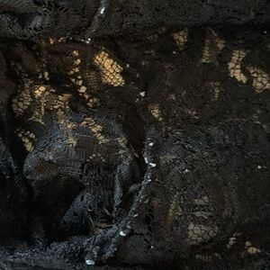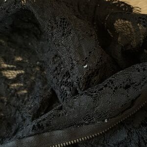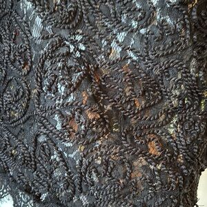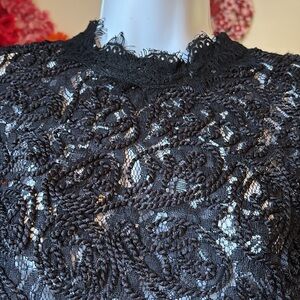 Lace Black Short-Sleeved Turtleneck Top • Zippers up Back • Can be styled with black bra • Condition: Very good; No major flaws, possible light wear from being worn or washed