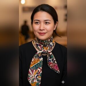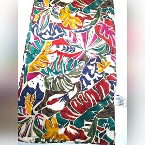Kathie Lee Silk Scarf Tropical Leaf & Flower pattern 60 x 10 woman gift quality