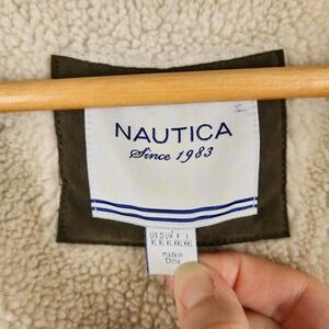 Nautica Jacket Womens Quilted Barn Green Faux Shearling Lined Elbow Patch XL