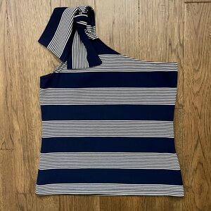 BISHOP & YOUNG Navy Striped One Shoulder Bow Top Size Small