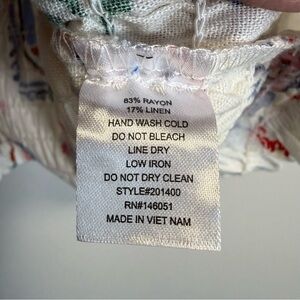 NEW MONTEAU Los Angeles Tropical Linen Blend Smocked Top Sqaure Neck Medium