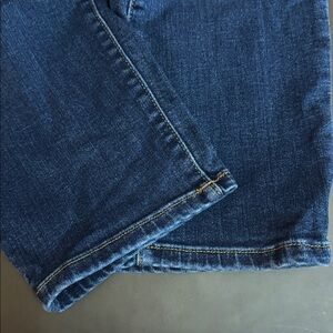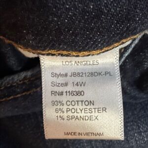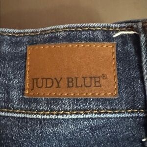 Classic dark blue denim with five-pocket styling. Subtle fading and tonal stitching. Leather Judy Blue logo patch at waistband. Versatile wardrobe staple with clean lines.