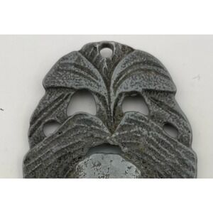 Sand-cast texture construction, hollowed back cavity, and three mounting holes indicate original use as a furniture or architectural appliqué, but would also make a wonderful jewelry or assemblage component or display object. Possibly revival c. 1930s-60s.