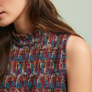 Anthropologie Akemi + Kin Petra Jacquard Top Chunky Knit Mock Neck Small Blouse