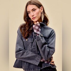 ♥️Hello Gorgeous! SO ME Denim Peplum Hem Front Button Jacket With Pockets