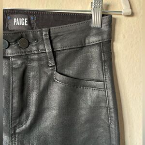 Paige Claudine Black Jeans Coated Cropped Flare Wide Leg Size 25